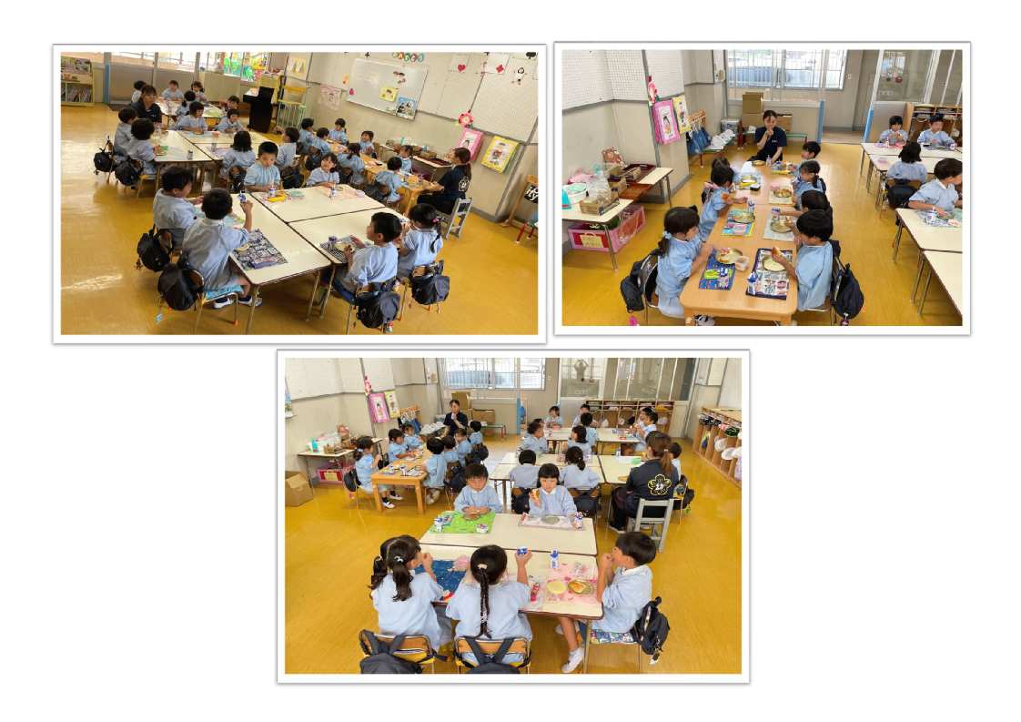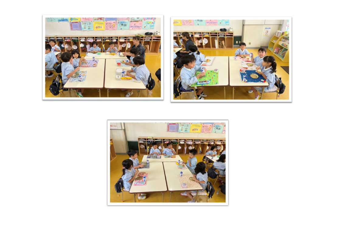 3才児はパン1個を食べられるように、4・5才児は食べられる量に合わせて(持参した)おかずをパンといっしょに食べます。