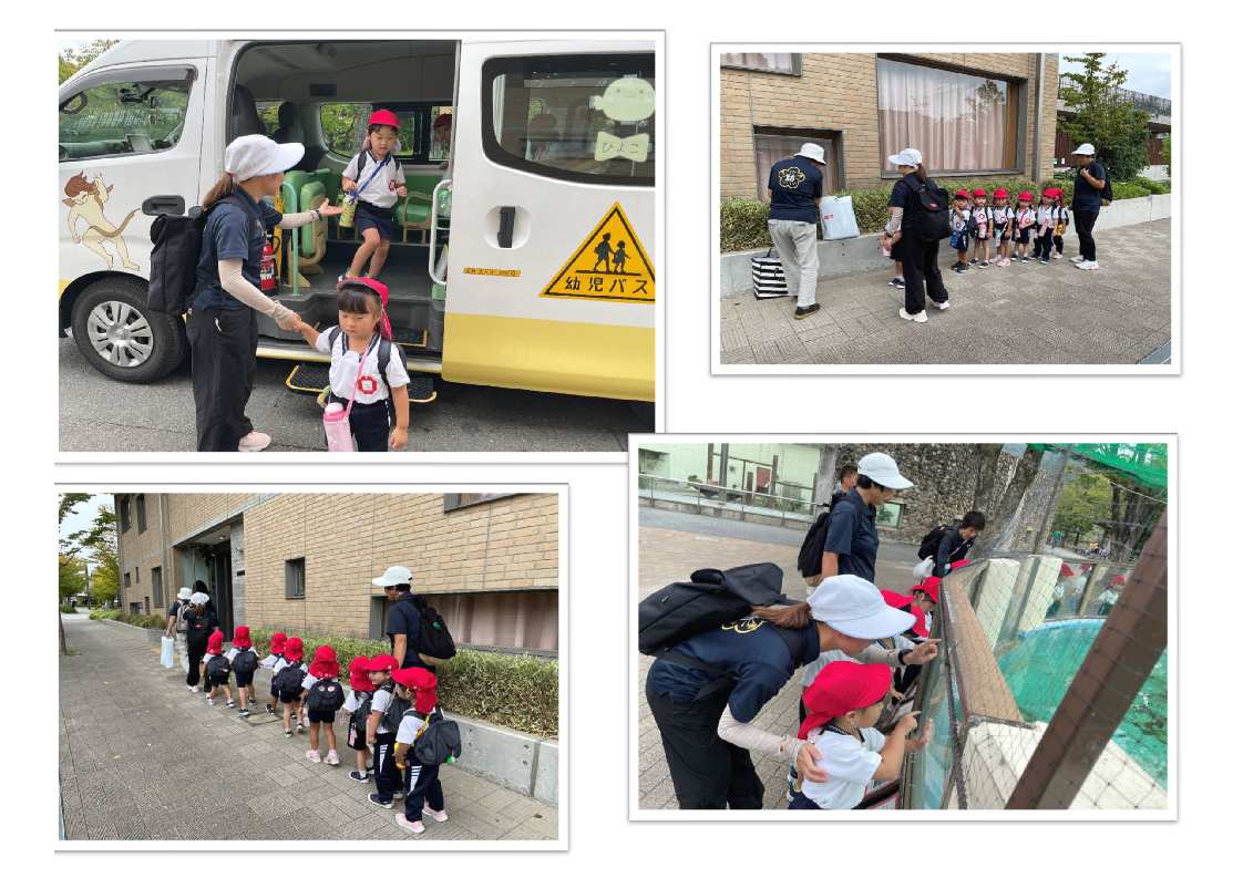 園バスに揺られ、動物園では頑張って歩いて、たくさんの動物をみて、みんなでお弁当を食べました。