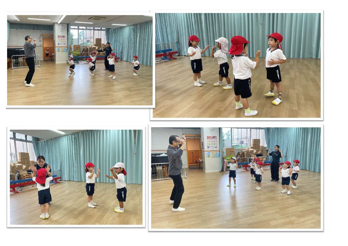 日常の活動の中にも、音楽・リズムに合わせて身体を動かしてあそんでいます。
