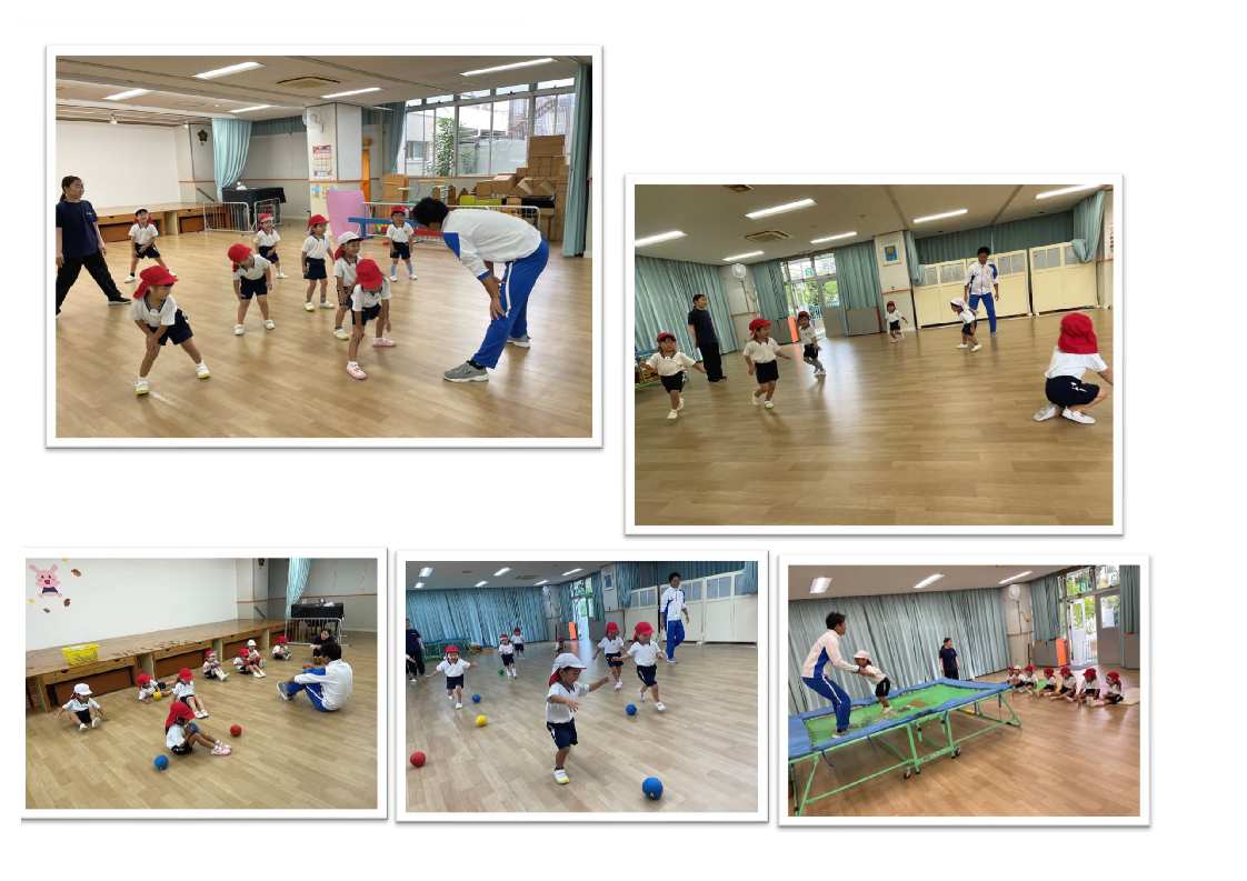 青風幼稚園では、体育あそび専門の先生に来ていただいて、楽しく身体を動かしています。
