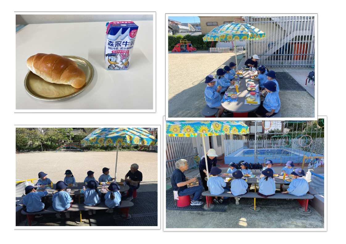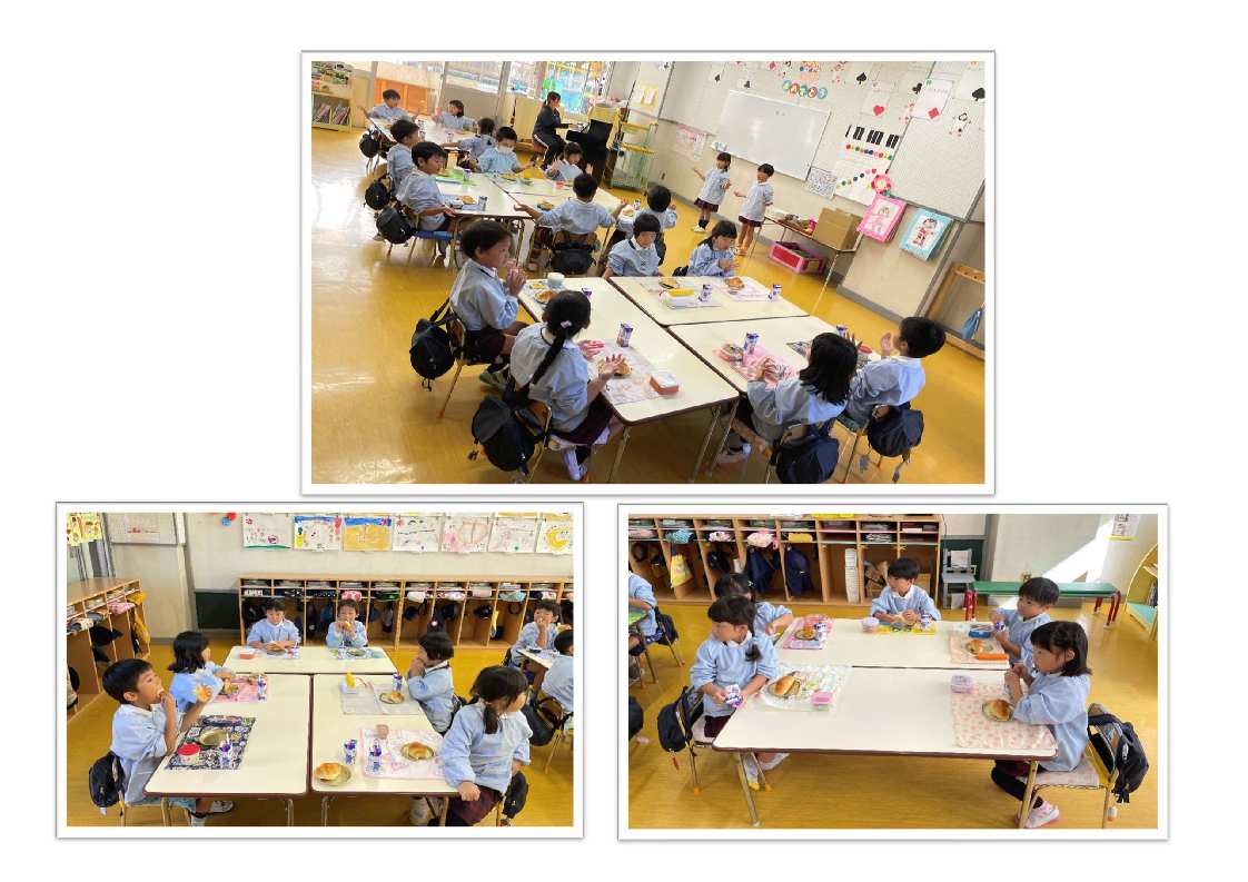 3才児はパン1個を食べられるように、4・5才児は食べられる量に合わせて(持参した)おかずをパンといっしょに食べます。