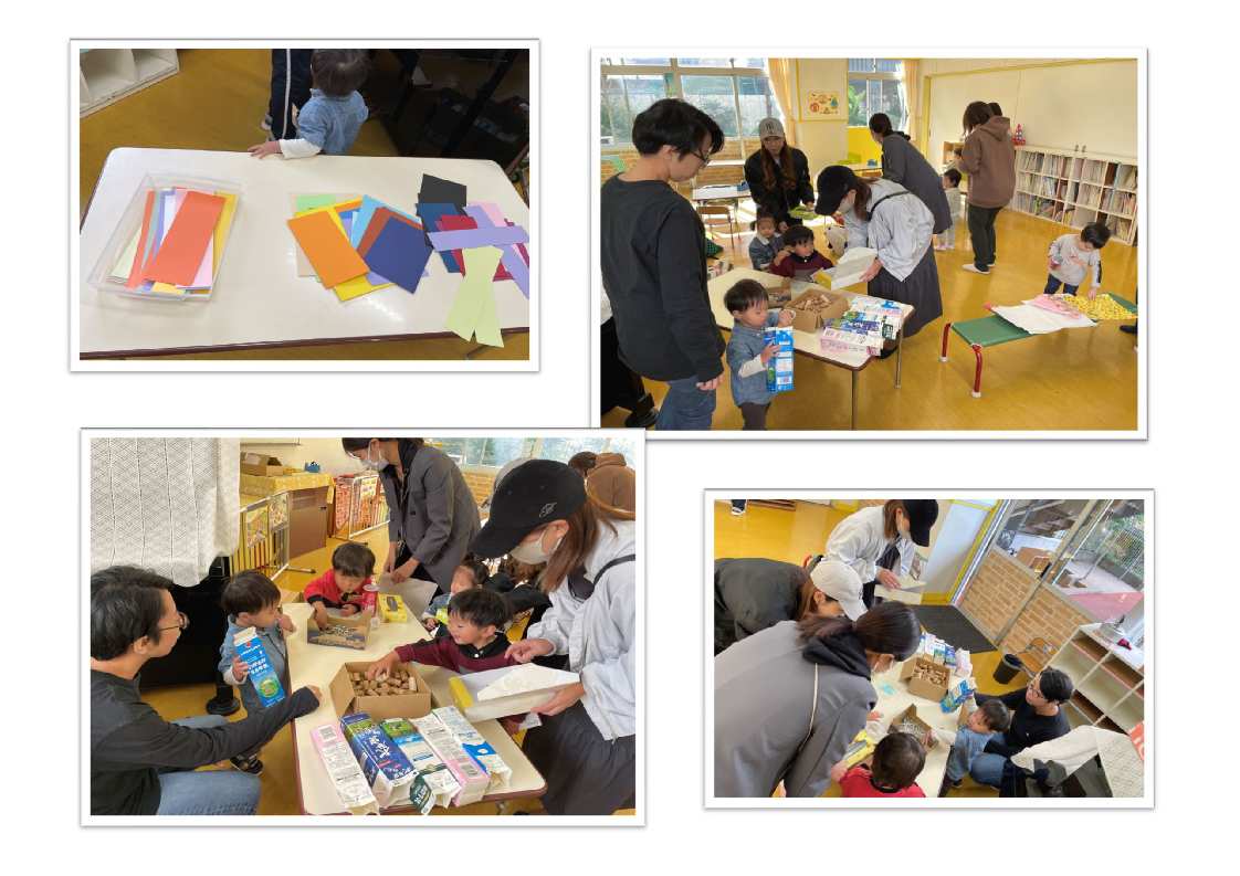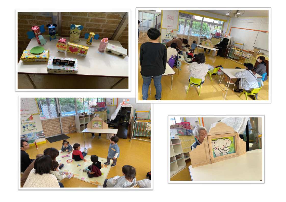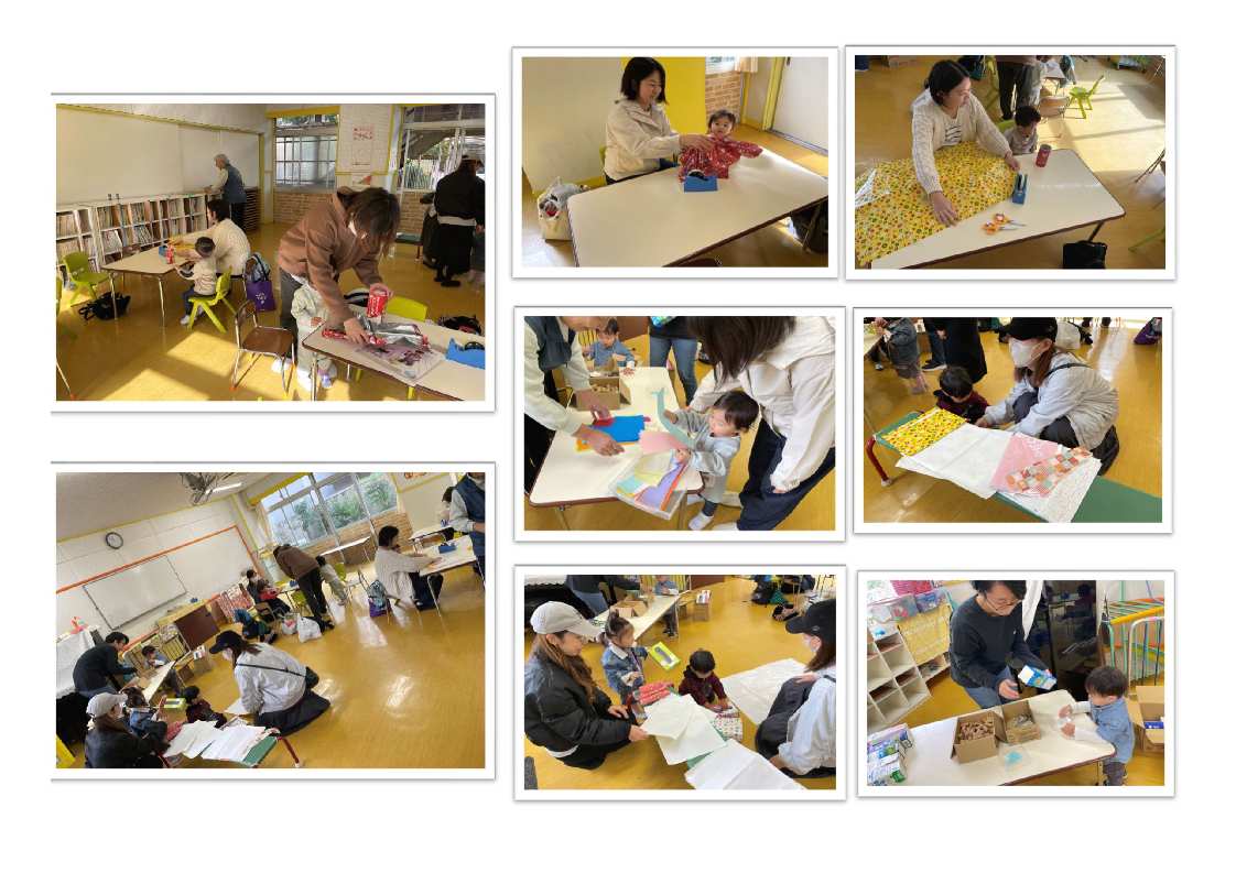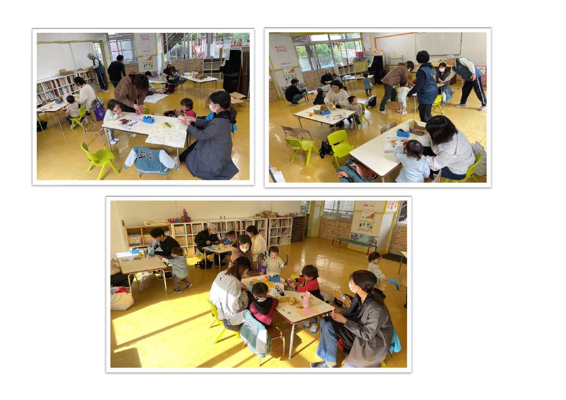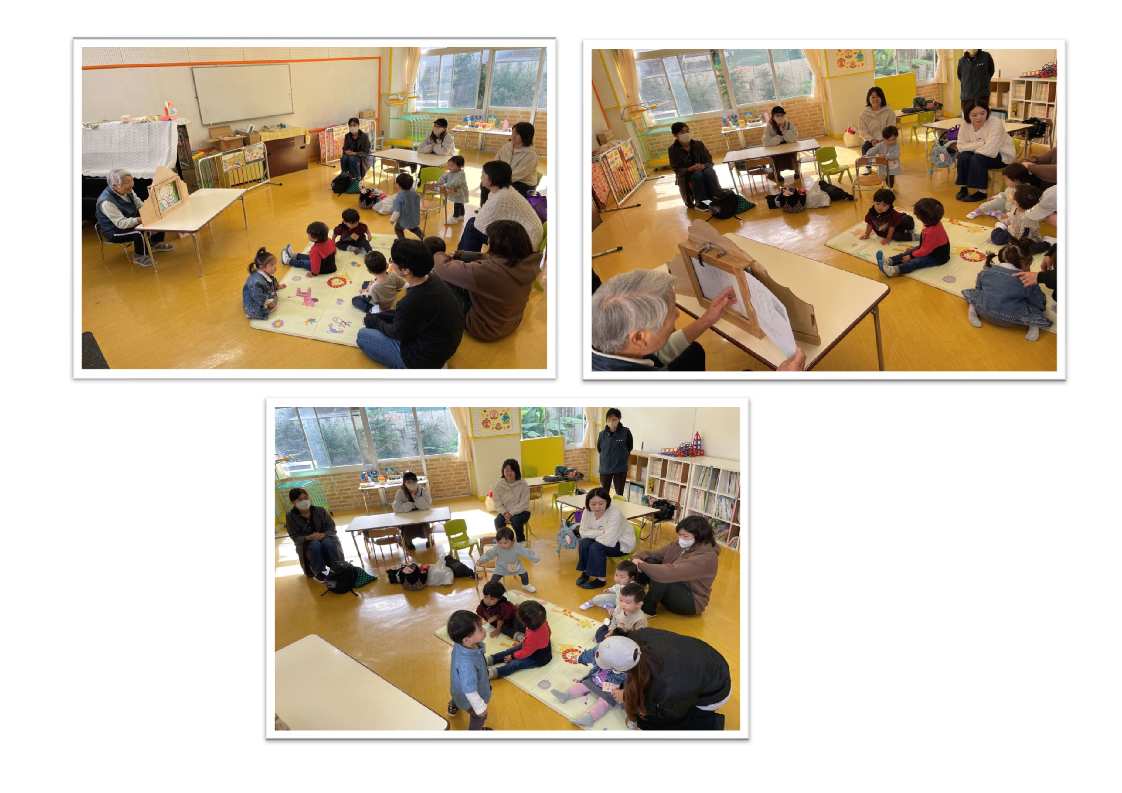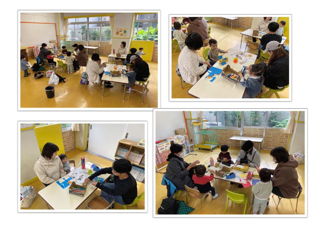 親子でふれあい 歌をうたったり作品展にむけて制作をしてあそんだあと、紙芝居 を楽しみました。