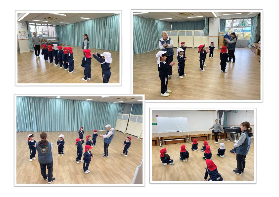 手拍子に合わせて声を出しながら、身体を動かしたりしてあそびました。