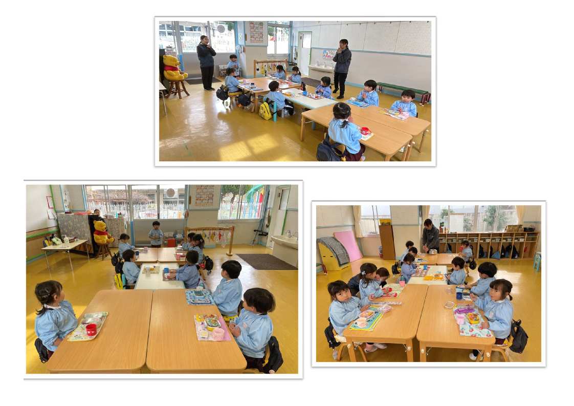 満三歳児は年少組さんと一緒にお昼ご飯を食べます。