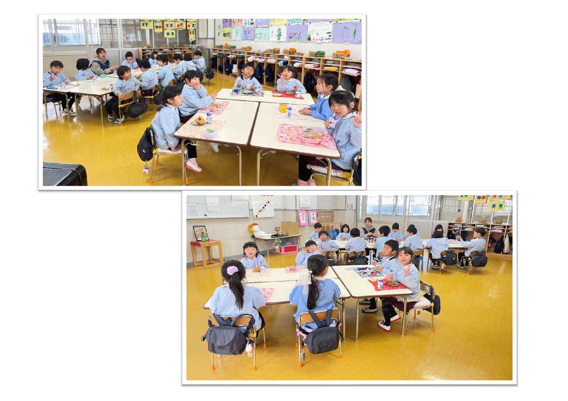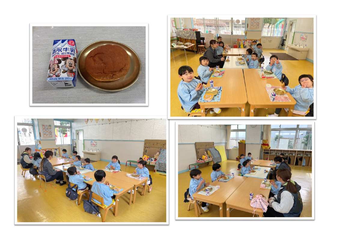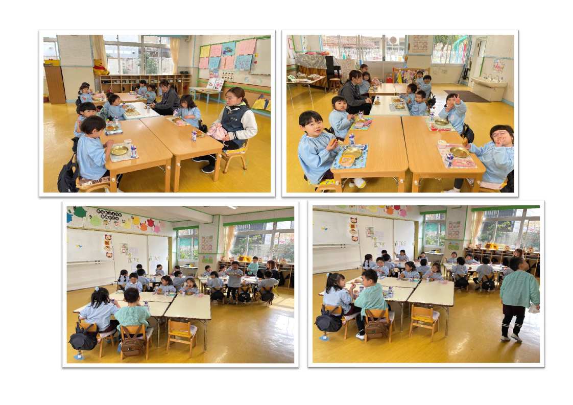 3才児はパン1個を食べられるように、4・5才児は食べられる量に合わせて(持参した)おかずをパンといっしょに食べます。