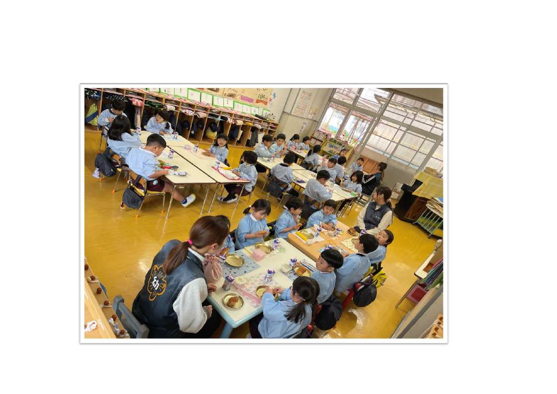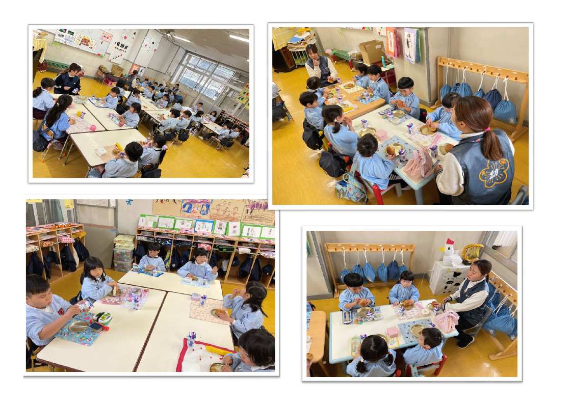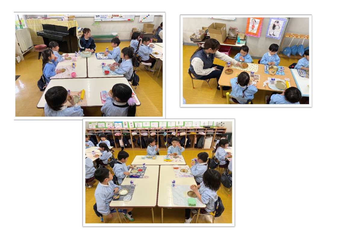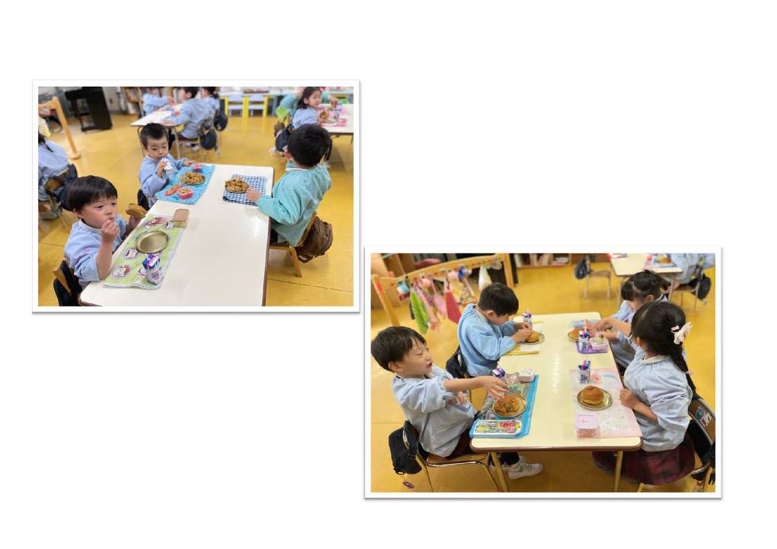 3才児はパン1個を食べられるように、4・5才児は食べられる量に合わせて(持参した)おかずをパンといっしょに食べます。