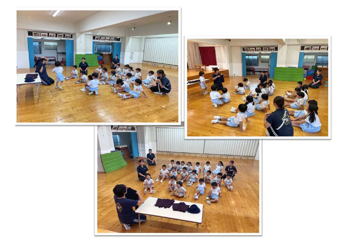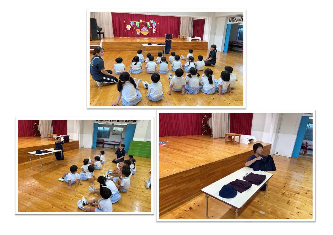 明日から、紺色の帽子・エンジと紺のズボン・スカートですごします。