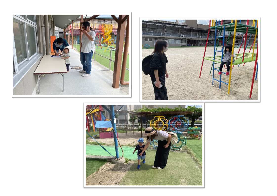 園庭開放受付票に、健康状態・氏名・住所などの記入にご協力いただいています。