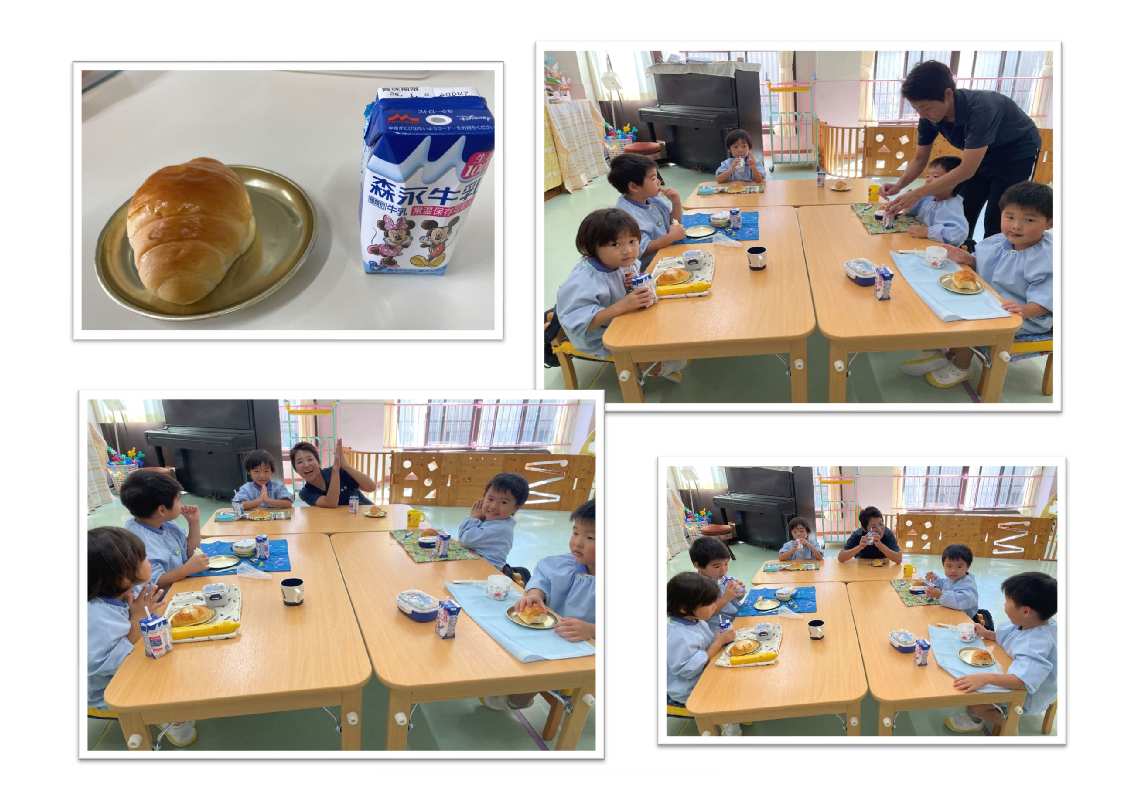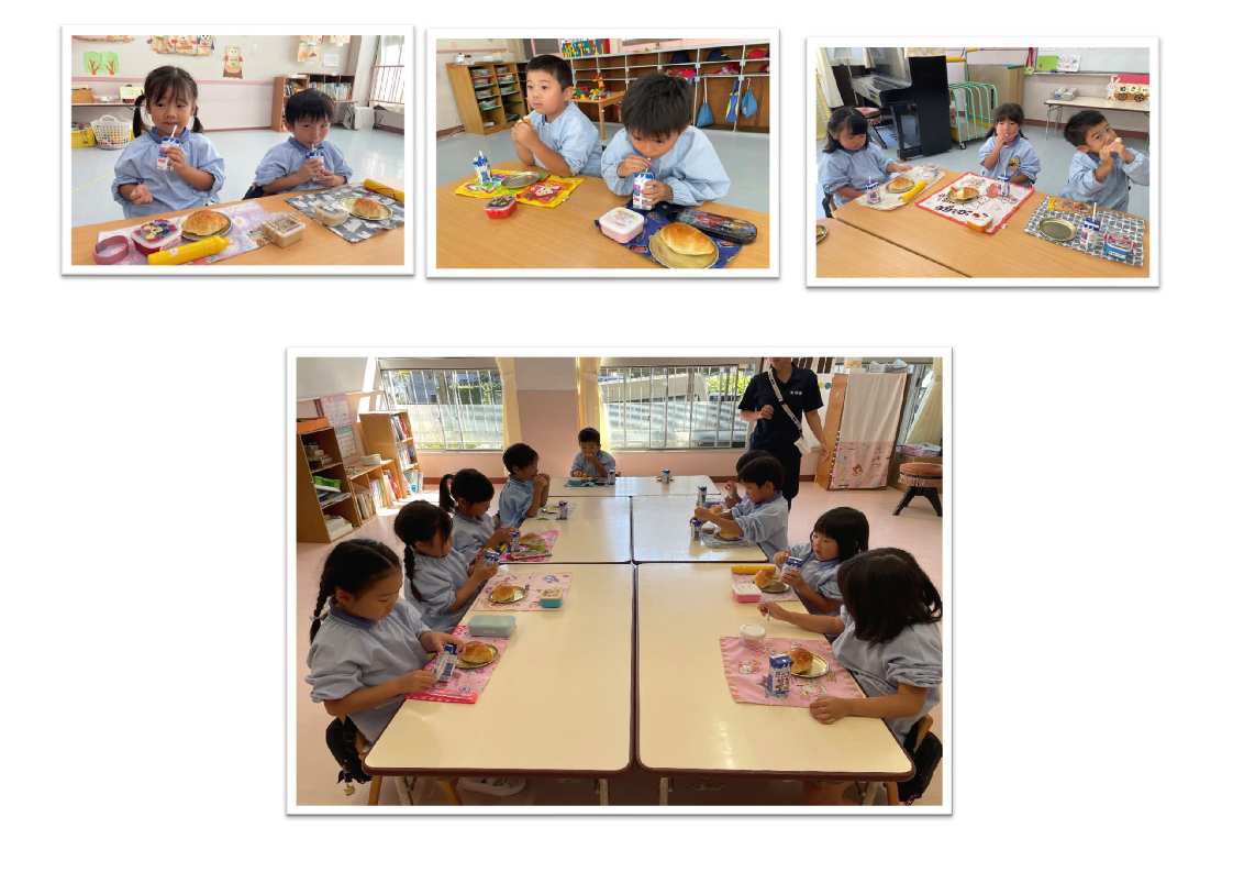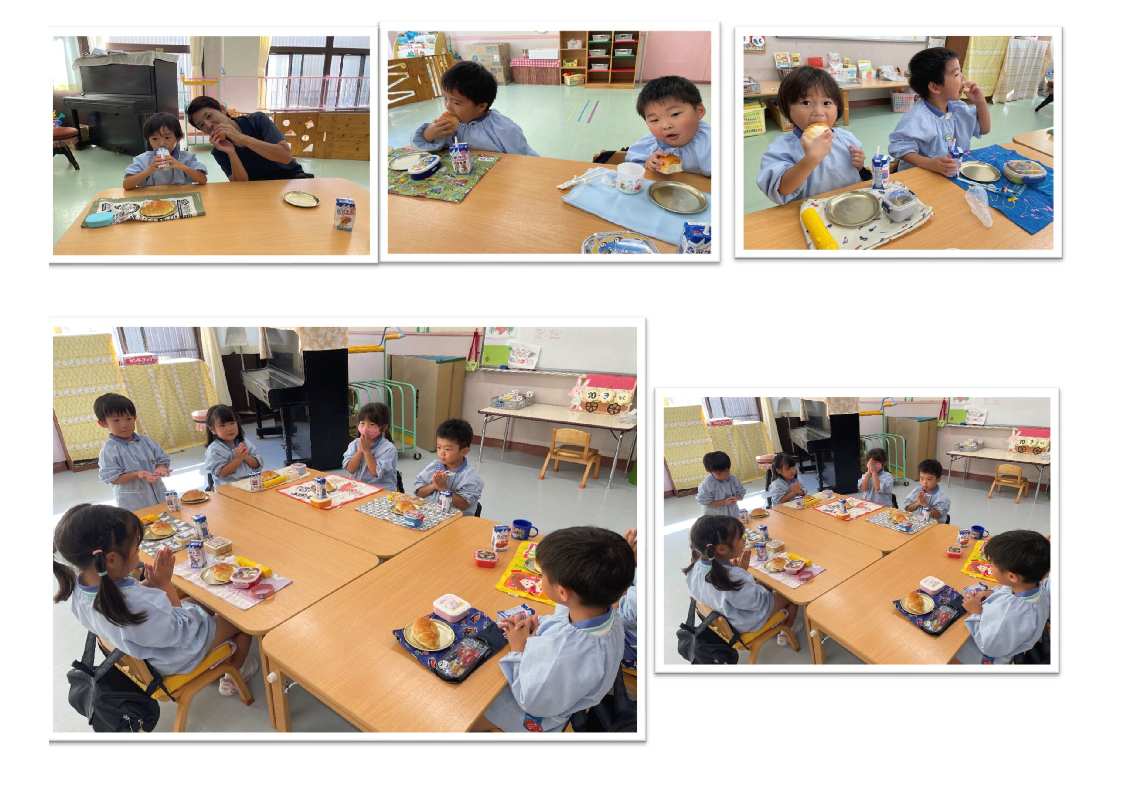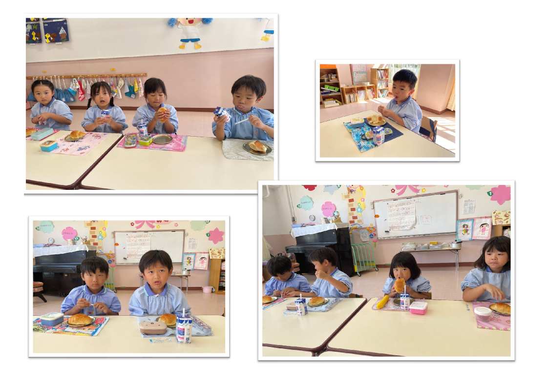 3才児はパン1個を食べられるように、4・5才児は食べられる量に合わせて(持参した)おかずをパンといっしょに食べます。