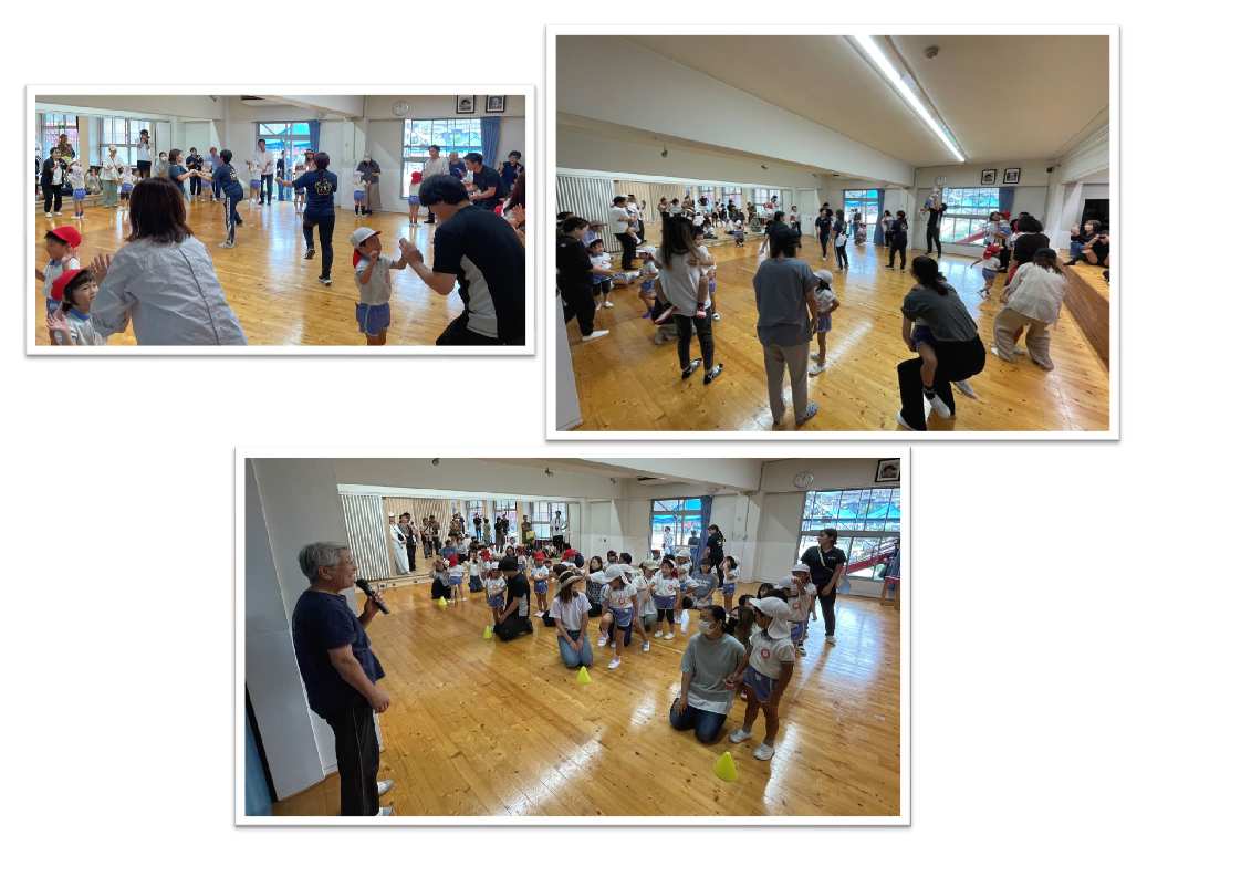 サーキット・組み立てたいそう・フォークダンスと閉会のあいさつは、大きなお部屋に移動し