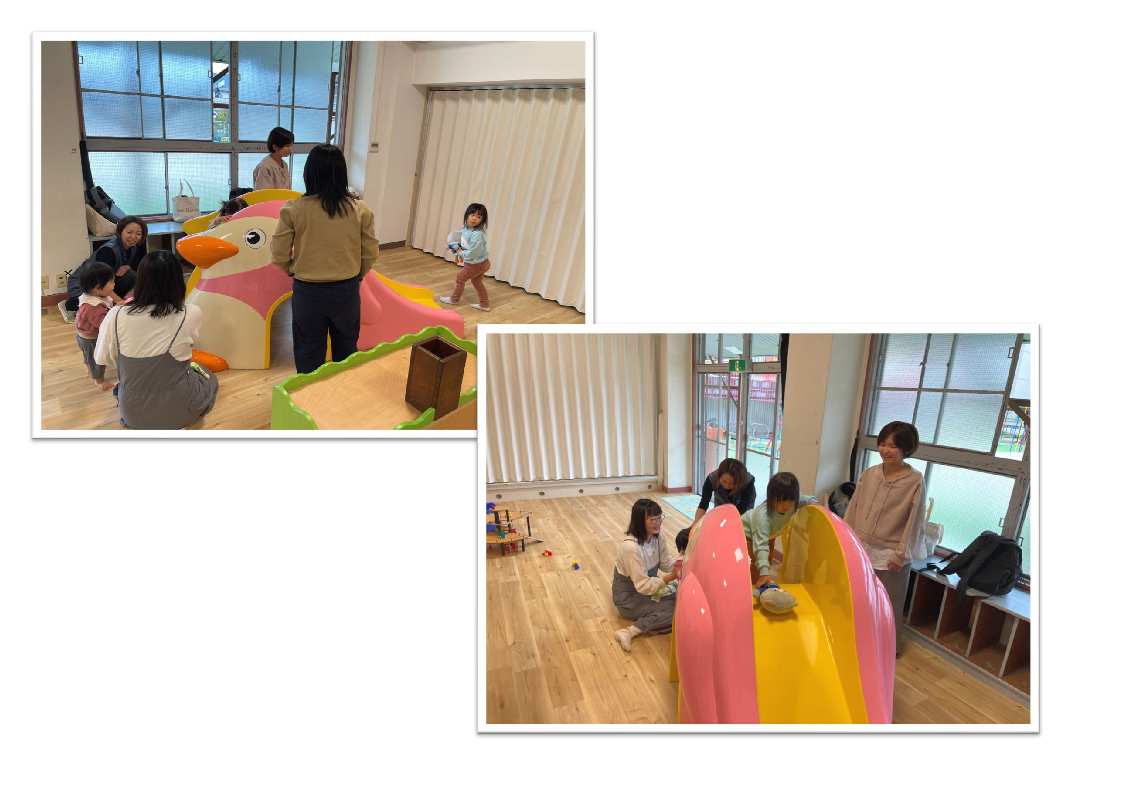☆子育て相談等、また、親子教室(毎月1回)、ぺんぎん組(未満児保育)の説明も行っています。