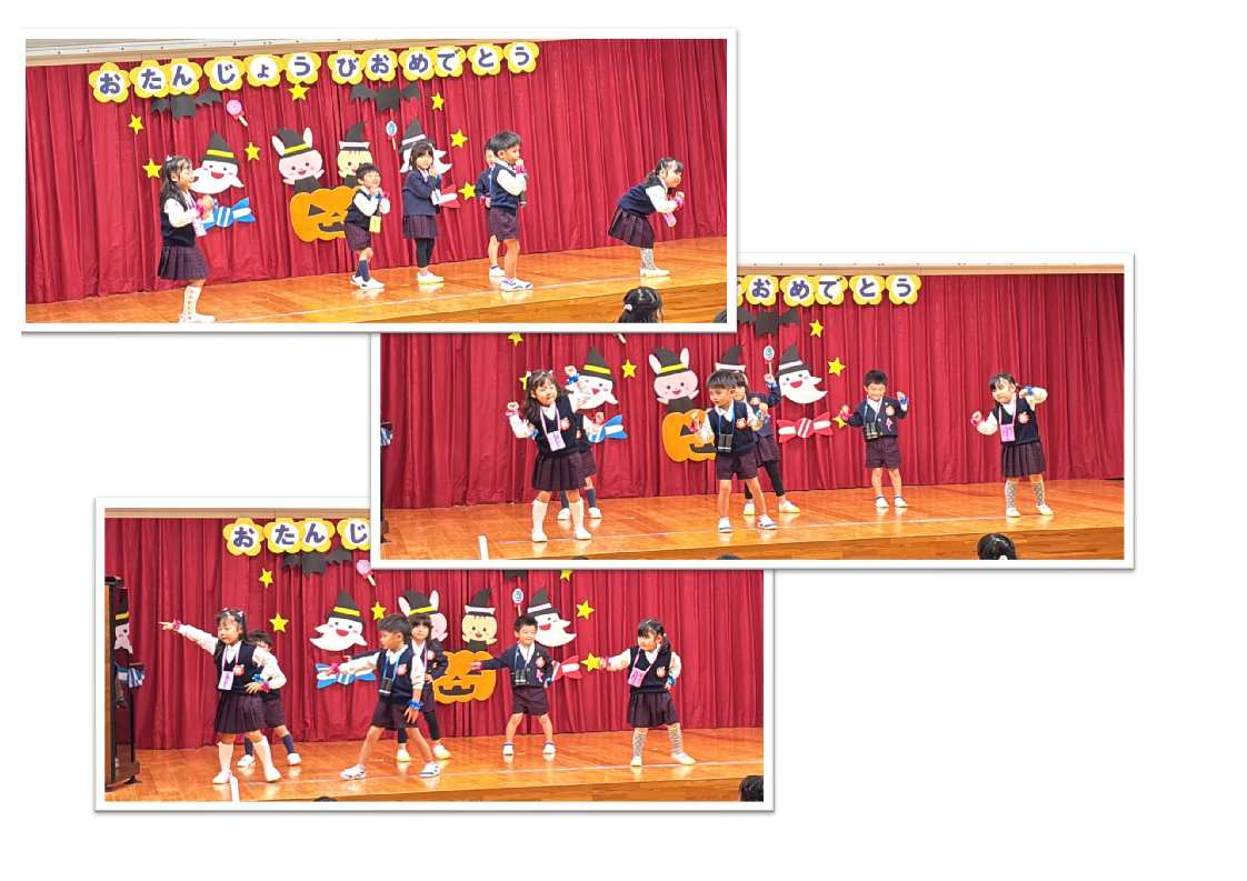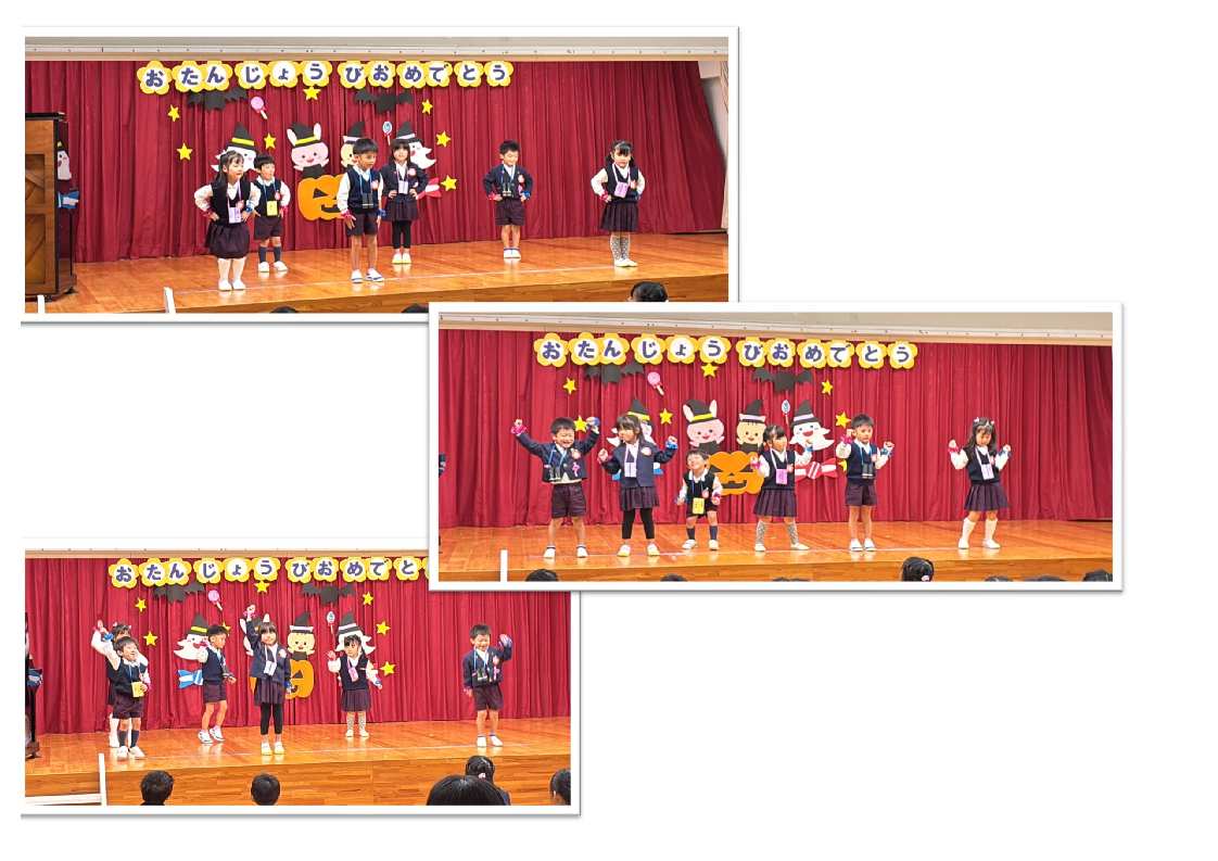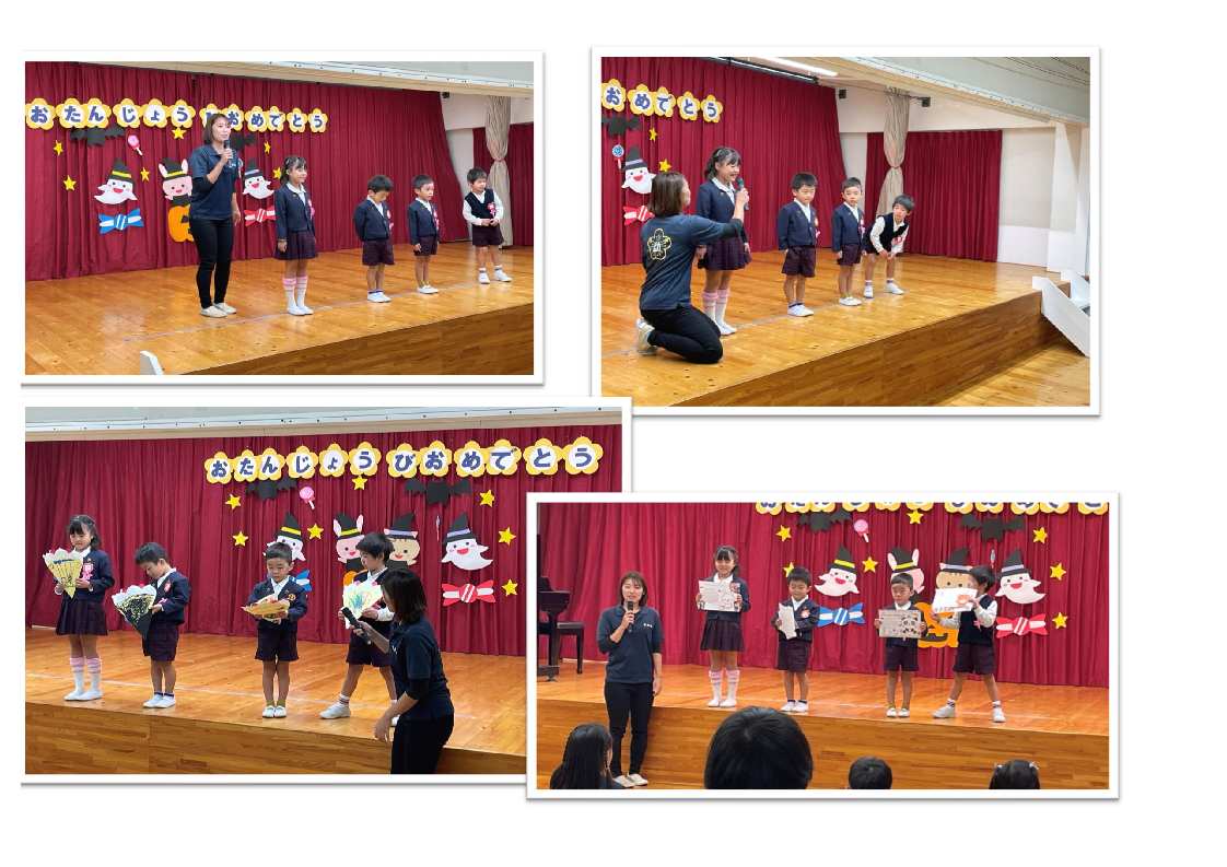 お誕生月のおともだち舞台にあがり、みんなでお祝いしました。