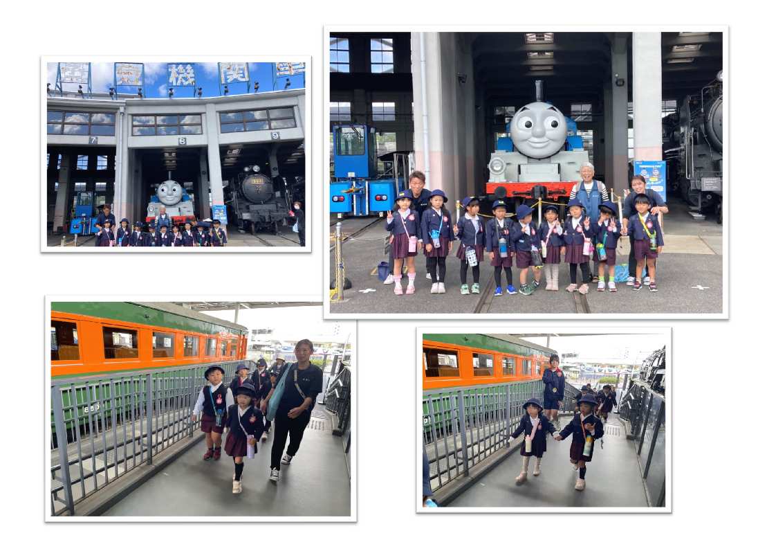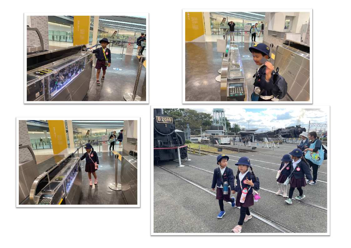 年長組さん、園バスに乗って、青風幼稚園のさくら組さんと一緒に鉄道博物館に行きました。