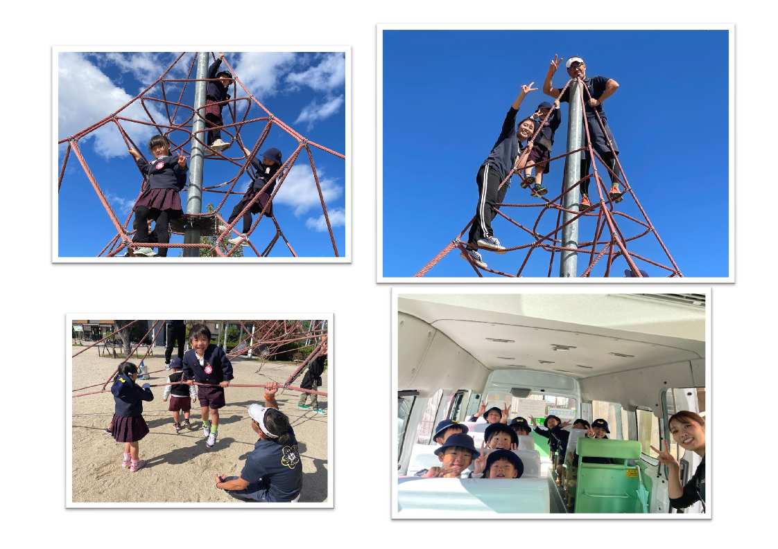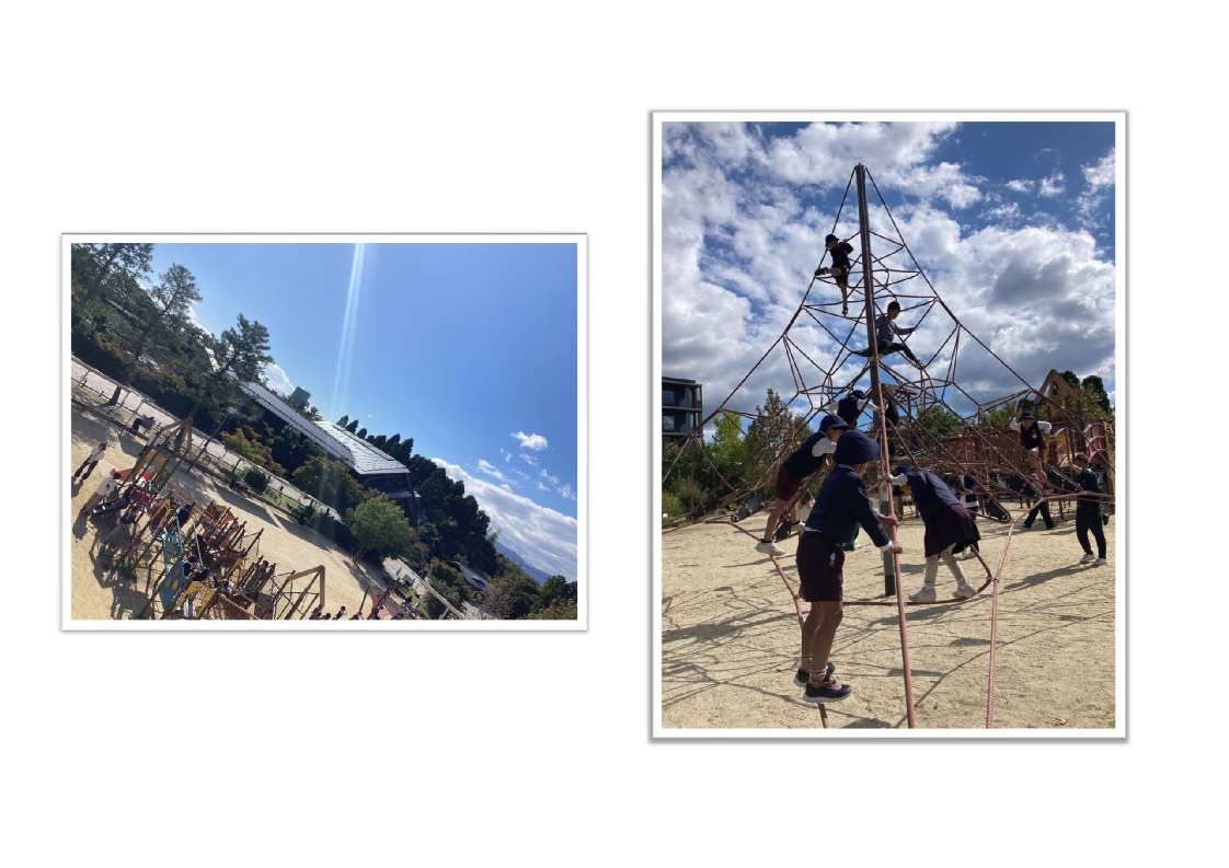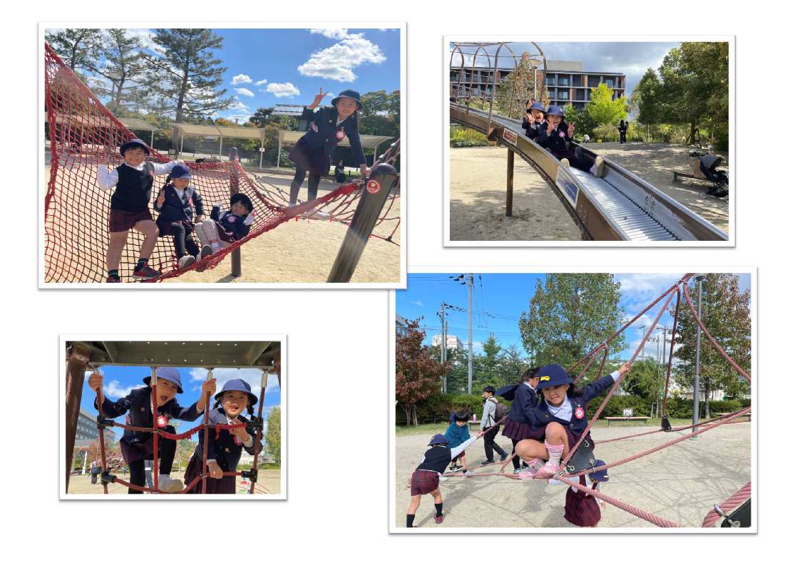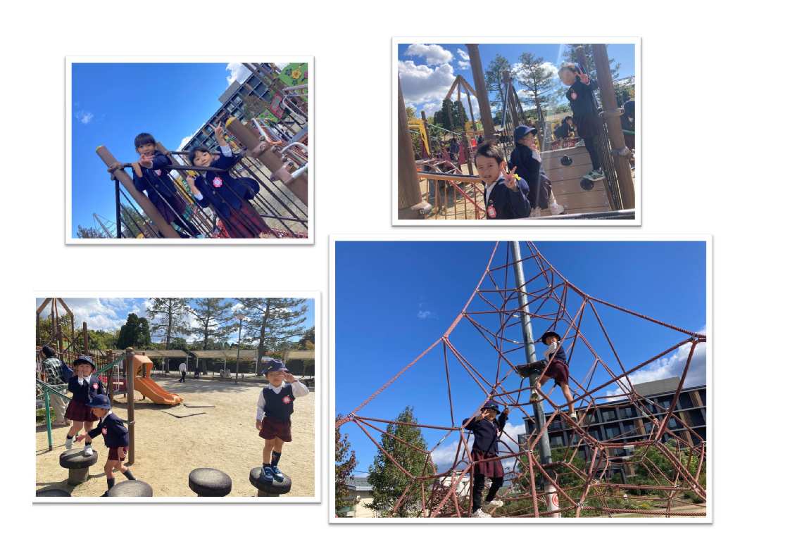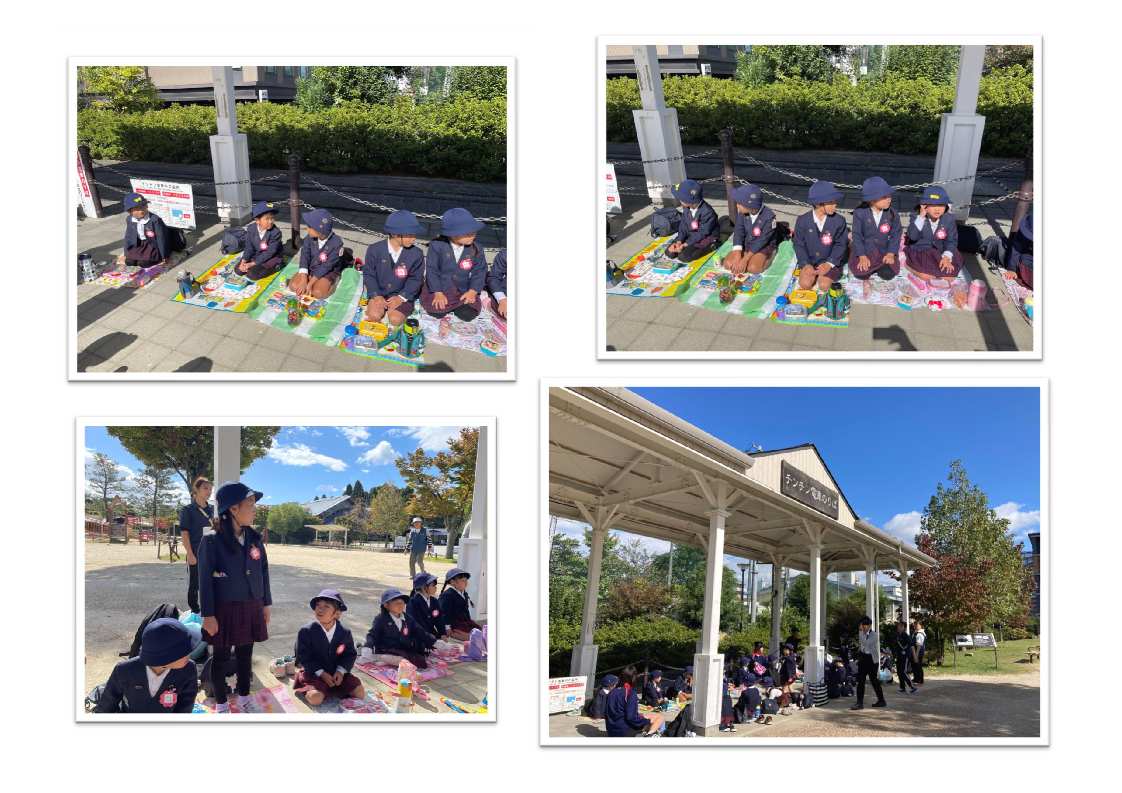 頑張ってたくさん歩いたあと、みんなでお弁当を食べて公園であそびました。