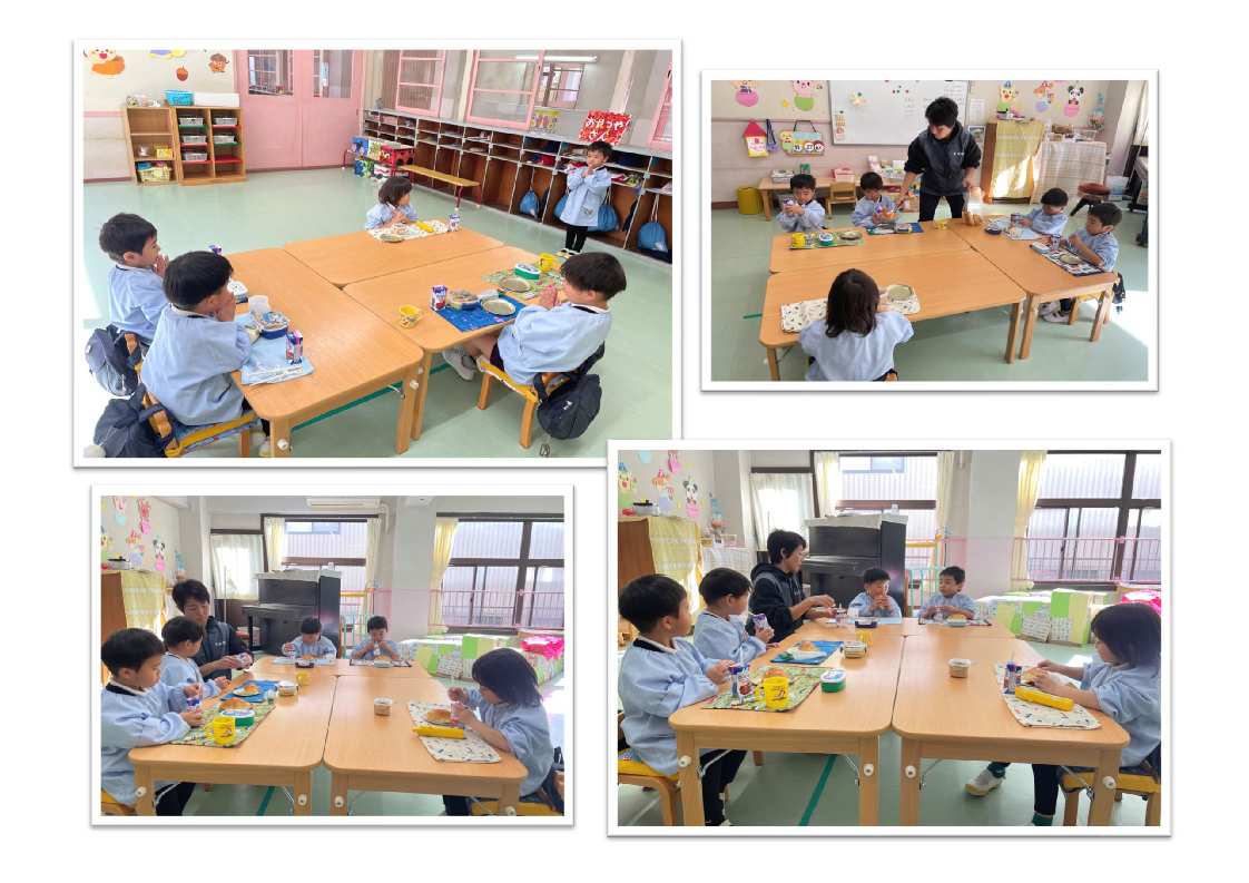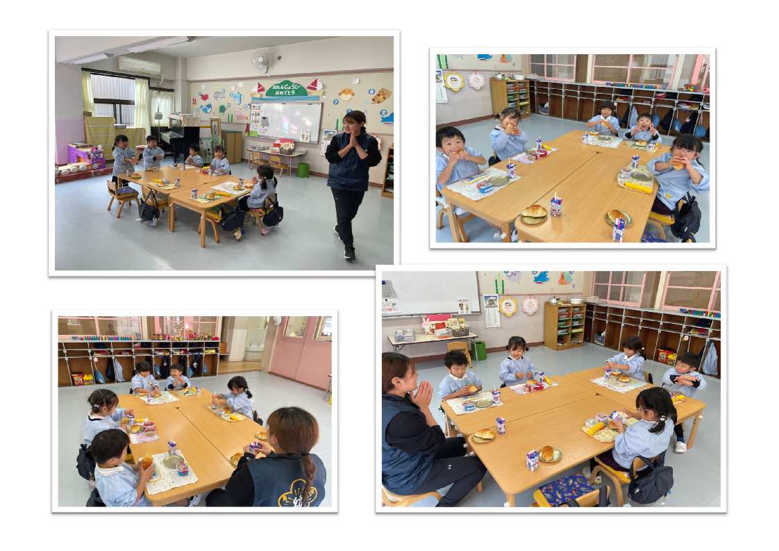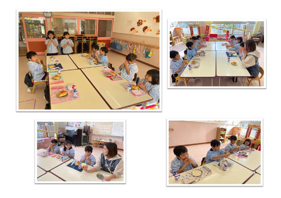3才児はパン1個を食べられるように、4・5才児は食べられる量に合わせて(持参した)おかずをパンといっしょに食べます。