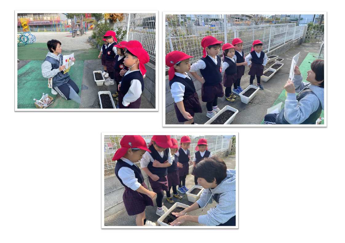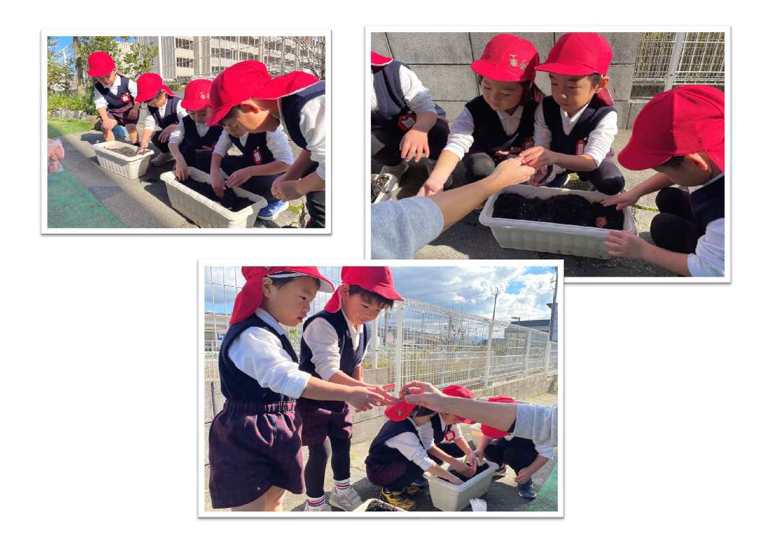 ホーム 青風塾について 青風幼稚園 青風和泉幼稚園 園での生活 子育て支援 採用情報 お問い合わせ 青風和泉幼稚園園だより ちゅうりっぷの球根を植えました 2025.12.09 今日はちゅうりっぷの球根を植えました。 先生の説明を熱心に聞いたあと、 自分たちの手でプランターの土の中に埋めました。 何色の花が咲くか、楽しみです。 毎日、みんなで水やりを頑張ります。 一覧へ戻る 青風塾について 青風塾で掲げる理念や歴史、概要をご紹介します。 詳しく見る