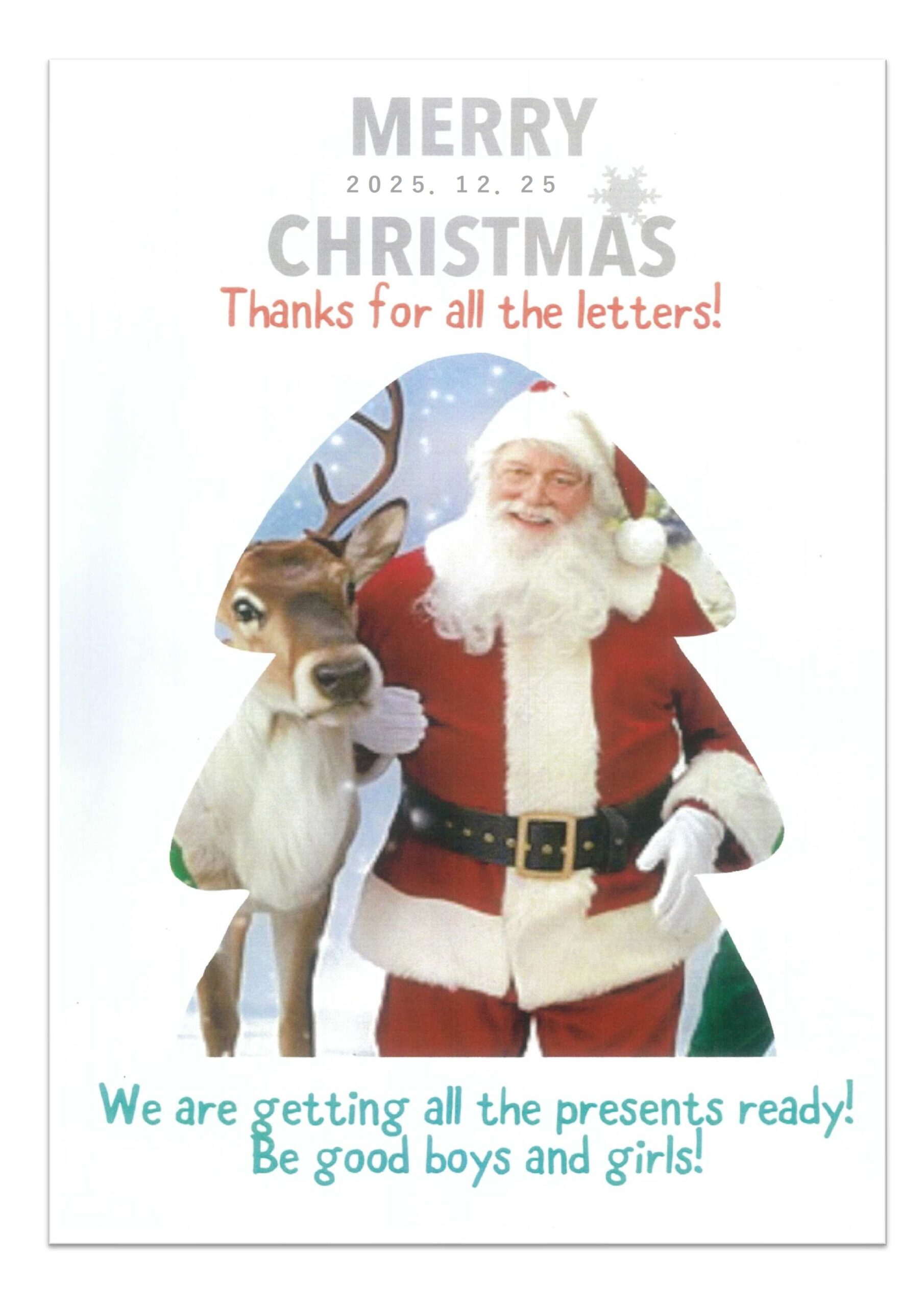 ホーム 青風塾について 青風幼稚園 青風和泉幼稚園 園での生活 子育て支援 採用情報 お問い合わせ 青風和泉幼稚園園だより サンタクロースからの手紙 2025.12.18 英語あそび(12/3) サンタさんに手紙を書いて送りました。 今朝、サンタクロースから返事が届きましたので みんな持ち帰りました。 一覧へ戻る 青風塾について 青風塾で掲げる理念や歴史、概要をご紹介します。 詳しく見る