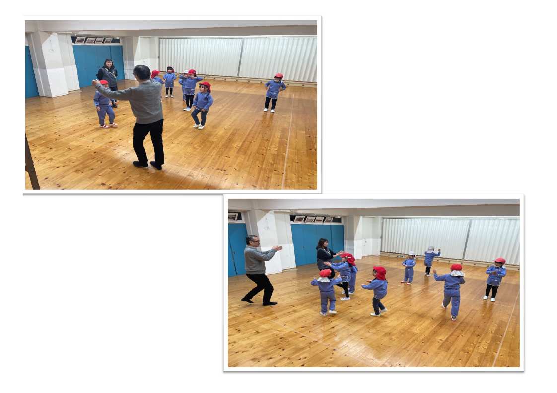 日常の活動の中にも、音楽・リズムに合わせて身体を動かしてあそんでいます。