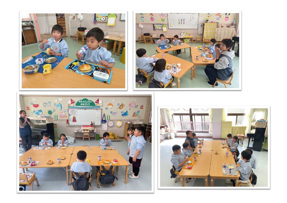 年長組さん、幼稚園で最後に食べるパン給食は、ロールパンでした。